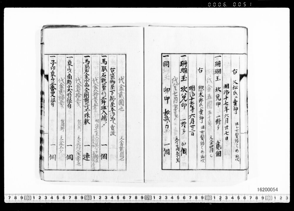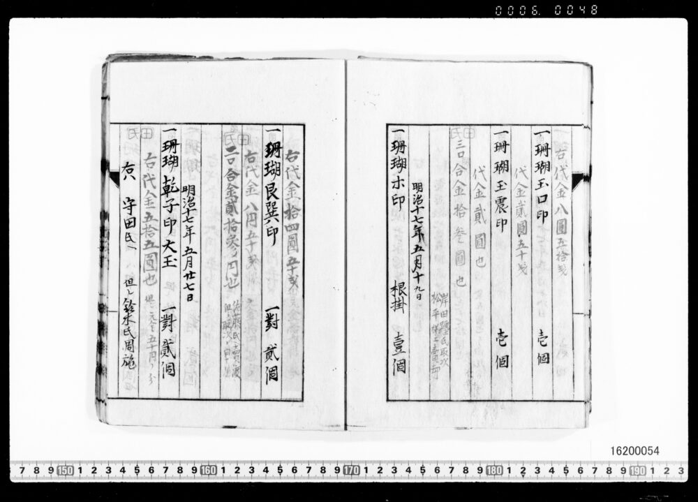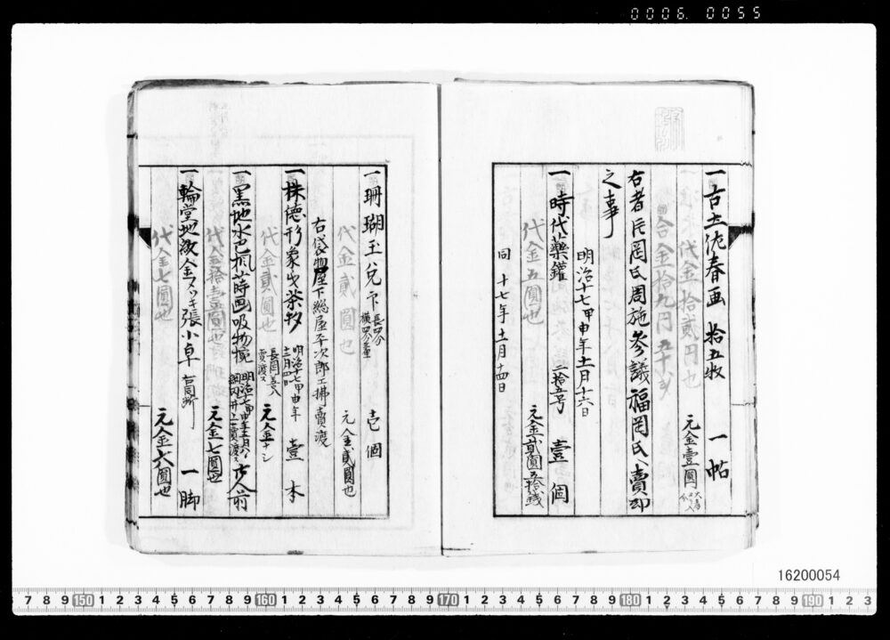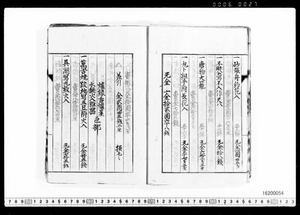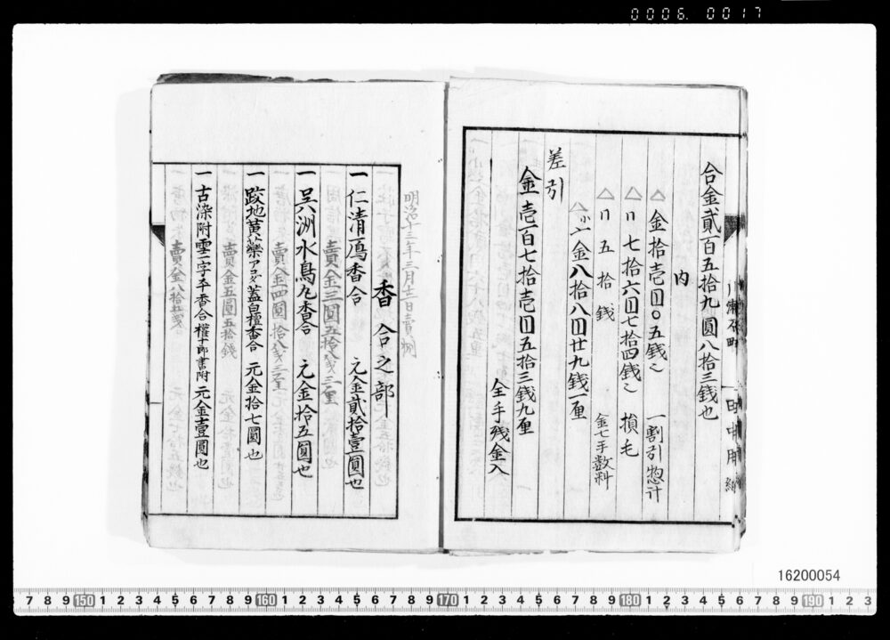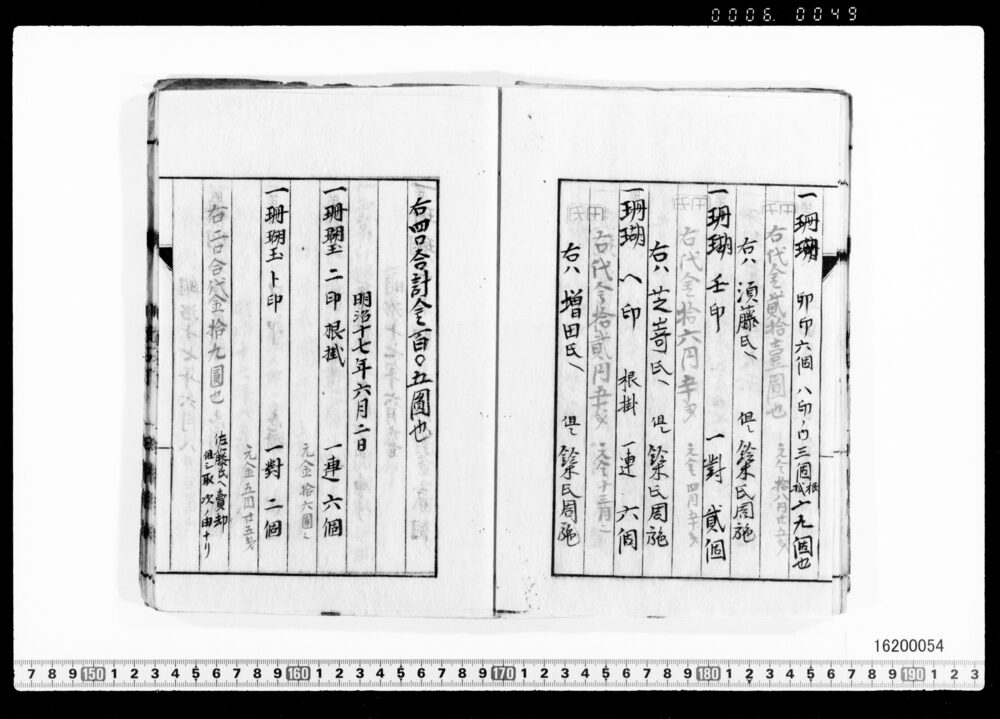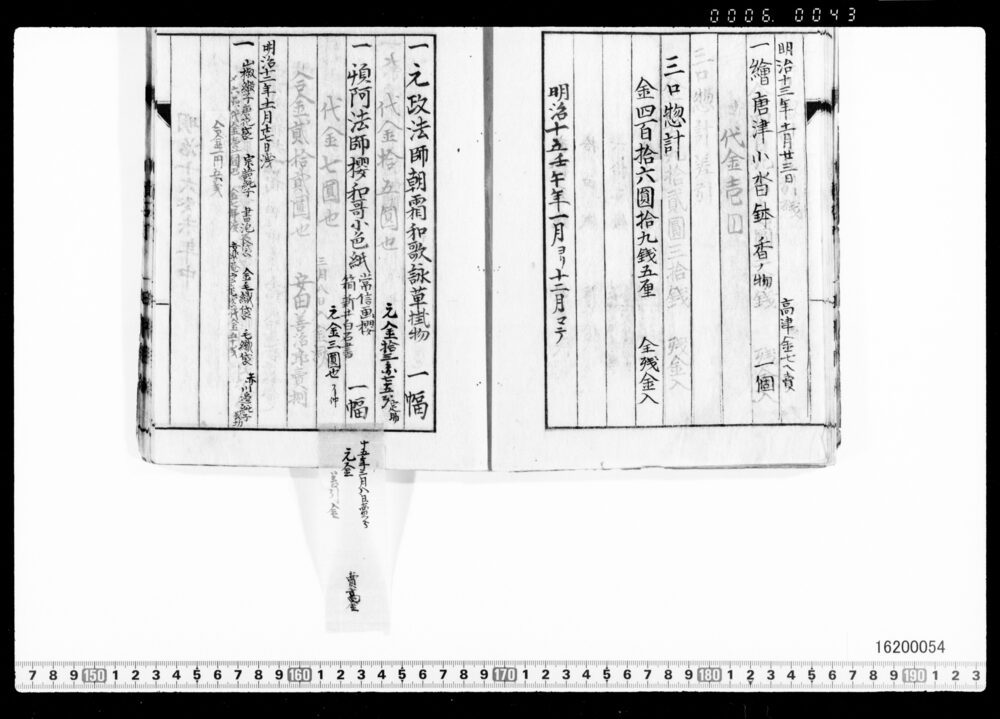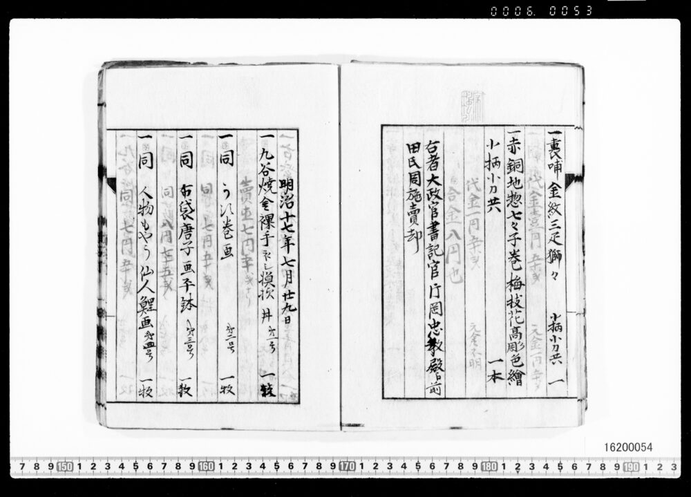 Sales Prices of Hanging Scrolls and Tea Utensils (Archives of the Komeya Tanaka Clan)