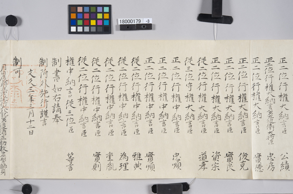 [Informal Imperial Letter Regarding Conferment of a Rank] (Fujiwara Masamitsu Conferred Junior Fifth Rank, Lower Grade, Reference Materials on Takahashi Deishu)
