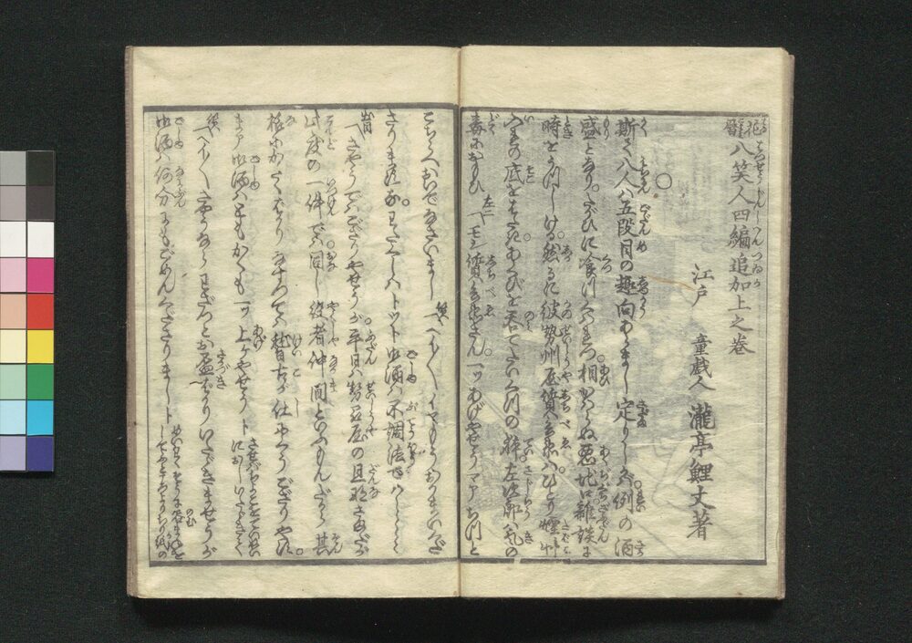 | 4 |  | 88208071 | 花暦八笑人 二編 上 Hanagoyomi Hasshōjin (Flower Calendar: Farce of Eight Laughing People), Part 1 of Vol. 2 | 瀧亭鯉丈/著 渓斎英泉/画 | 江戸後期 文政4年 1821 19世紀 | 17.7 cm x 12.0 cm |