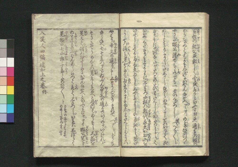 | 3 |  | 88208070 | 花暦八笑人 初編 下 Hanagoyomi Hasshōjin (Flower Calendar: Farce of Eight Laughing People), Part 2 of Vol. 1 | 瀧亭鯉丈/著 | 江戸後期 文政3年 1820 19世紀 | 17.7 cm x 12.0 cm |
