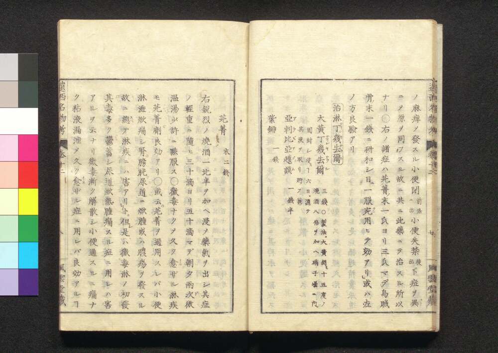 | 35 |  | 88208393 | 遠西醫方名物考 巻三十五 寸四 Ensei Ihō Meibutsu Kō (Book of Western Medicines), Vol. 35 | 宇田川榛斎/訳 宇田川榕庵/校補 | 江戸後期 文政5年壬午仲秋 1822 19世紀 | 26.0 cm x 17.7 cm |
