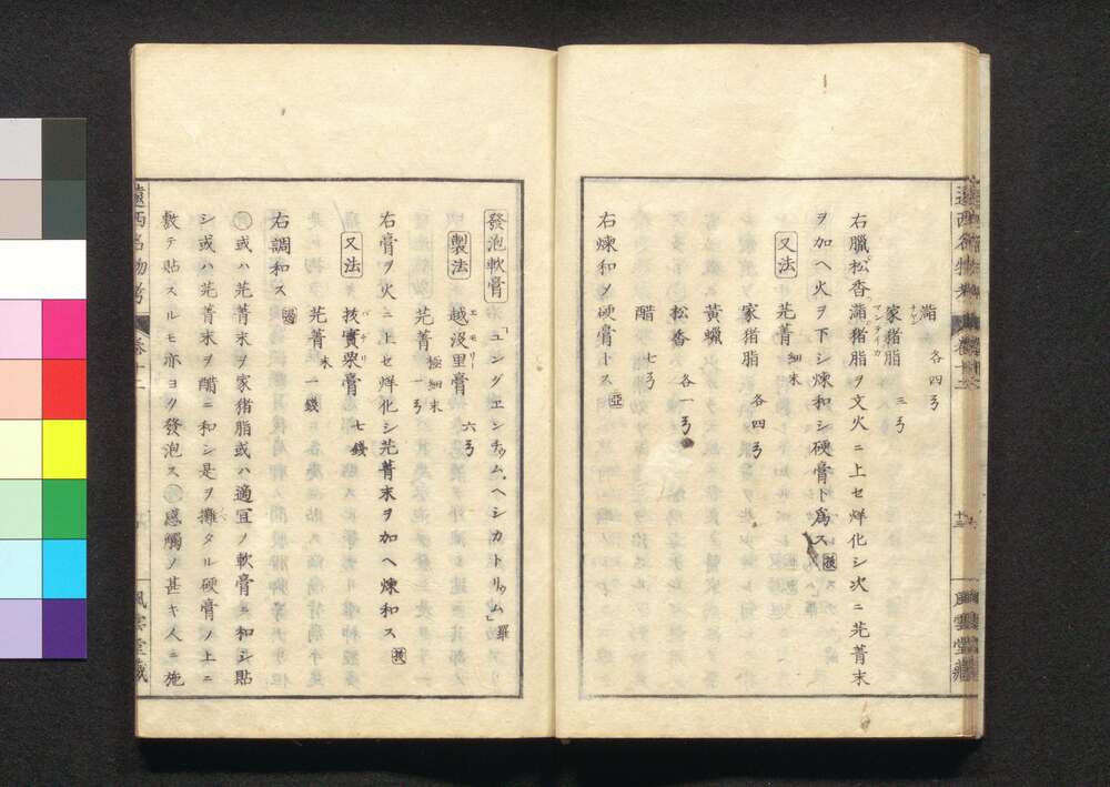 | 1 |  | 88208359-88208394 | 遠西醫方名物考 巻一 以 Ensei Ihō Meibutsu Kō (Book of Western Medicines) | 宇田川榛斎/訳 宇田川榕庵/校補 | 江戸後期 文政5年壬午仲秋 1822 19世紀 | 26.0 cm x 17.7 cm |