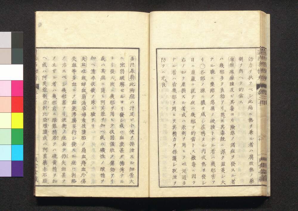 | 29 |  | 88208387 | 遠西醫方名物考 巻二十九 世二 Ensei Ihō Meibutsu Kō (Book of Western Medicines), Vol. 29 | 宇田川榛斎/訳 宇田川榕庵/校補 | 江戸後期 文政5年壬午仲秋 1822 19世紀 | 26.0 cm x 17.7 cm |