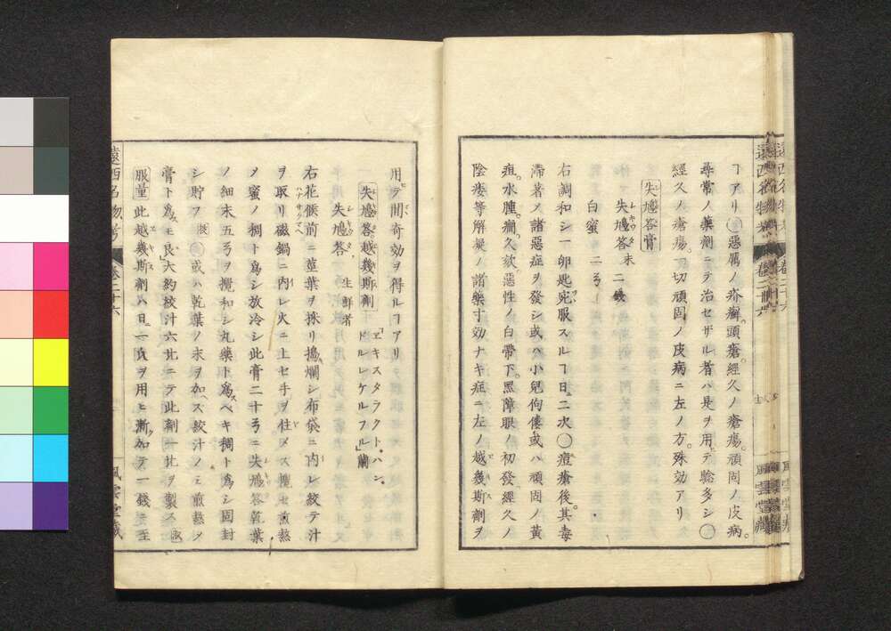 | 1 |  | 88208359-88208394 | 遠西醫方名物考 巻一 以 Ensei Ihō Meibutsu Kō (Book of Western Medicines) | 宇田川榛斎/訳 宇田川榕庵/校補 | 江戸後期 文政5年壬午仲秋 1822 19世紀 | 26.0 cm x 17.7 cm |