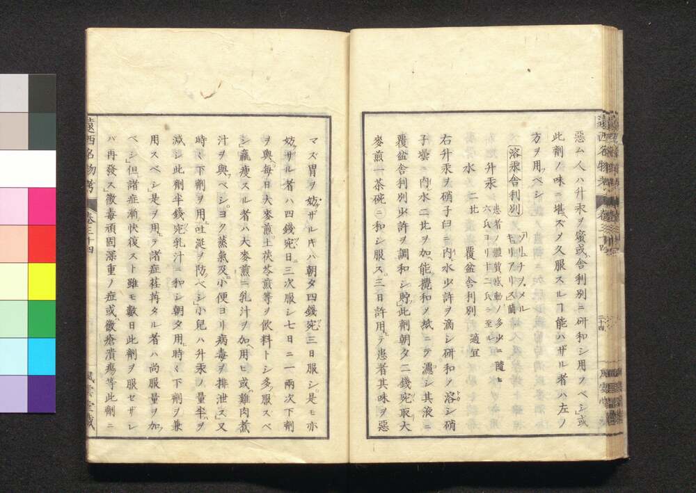 | 35 |  | 88208393 | 遠西醫方名物考 巻三十五 寸四 Ensei Ihō Meibutsu Kō (Book of Western Medicines), Vol. 35 | 宇田川榛斎/訳 宇田川榕庵/校補 | 江戸後期 文政5年壬午仲秋 1822 19世紀 | 26.0 cm x 17.7 cm |