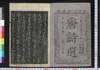 | 3 | ![]() | 90012230 | 唐詩選畫本 初編 三 Tōshi Sen Ehon (Illustrated Book of Poems of the Tang Dynasty), Vol. 1 (3) | 橘石峯/画 杉田金助/刻 | 江戸後期 文化2年 1805 19世紀 | 22.7 cm x 15.6 cm |