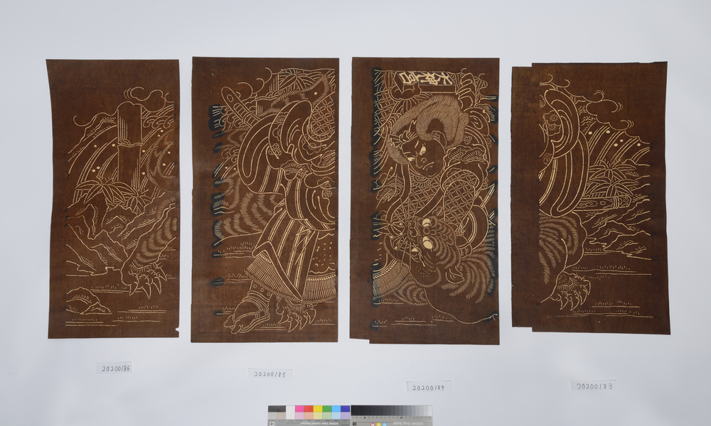 | 4 | ![]() | 20200186 | 半纏型紙(国性爺合戦・和藤内)4 Template for Hanten Coat, (Kokusenya Kassen, Watōnai) 4 | [江戸末期~大正期] [19~20世紀] | 71.2cm x 32.5cm |