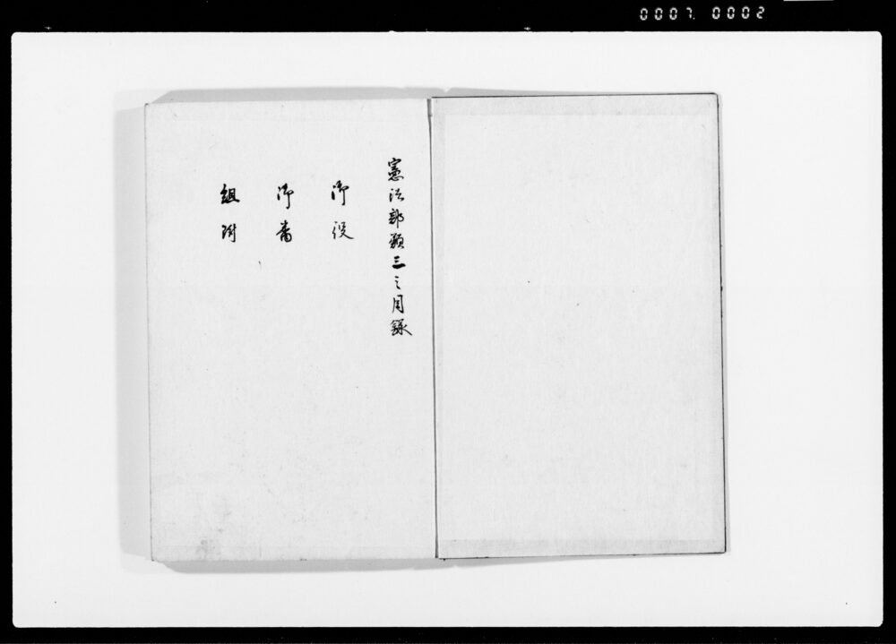 | 3 | ![]() | 90374559 | 憲法部類 三之巻下 Kempō Burui, Vol. 3, Part 2 (Classifications of Constitutional Law) | [江戸時代] 17~19世紀 | 23.9cm x 16.5cm |