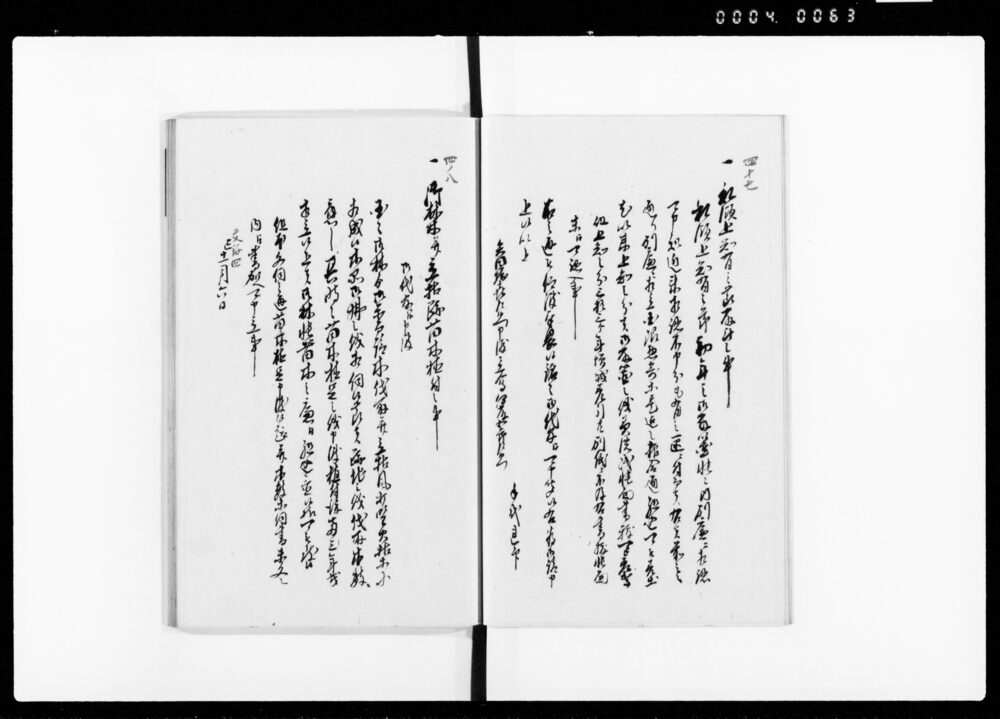 | 4 | ![]() | 90374670 | 公裁集 巻之四・五 Kōsaishū, Vol. 4, Vol. 5 (Hand-copied Book of Laws) | [江戸時代] 17~19世紀 | 23.6cm x 16.8cm |