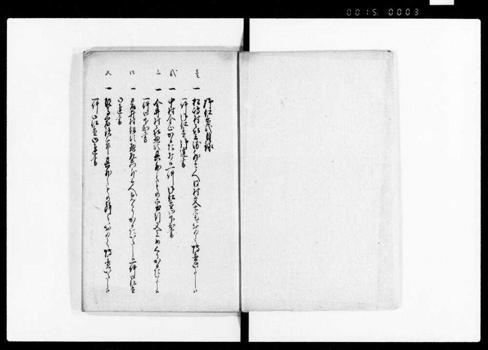 | 3 | ![]() | 90375115 | 御仕置 三 Oshioki Vol. 3 (Hand-copied Book of Laws) | [江戸時代] 17~19世紀 | 25.0cm x 17.0cm | |