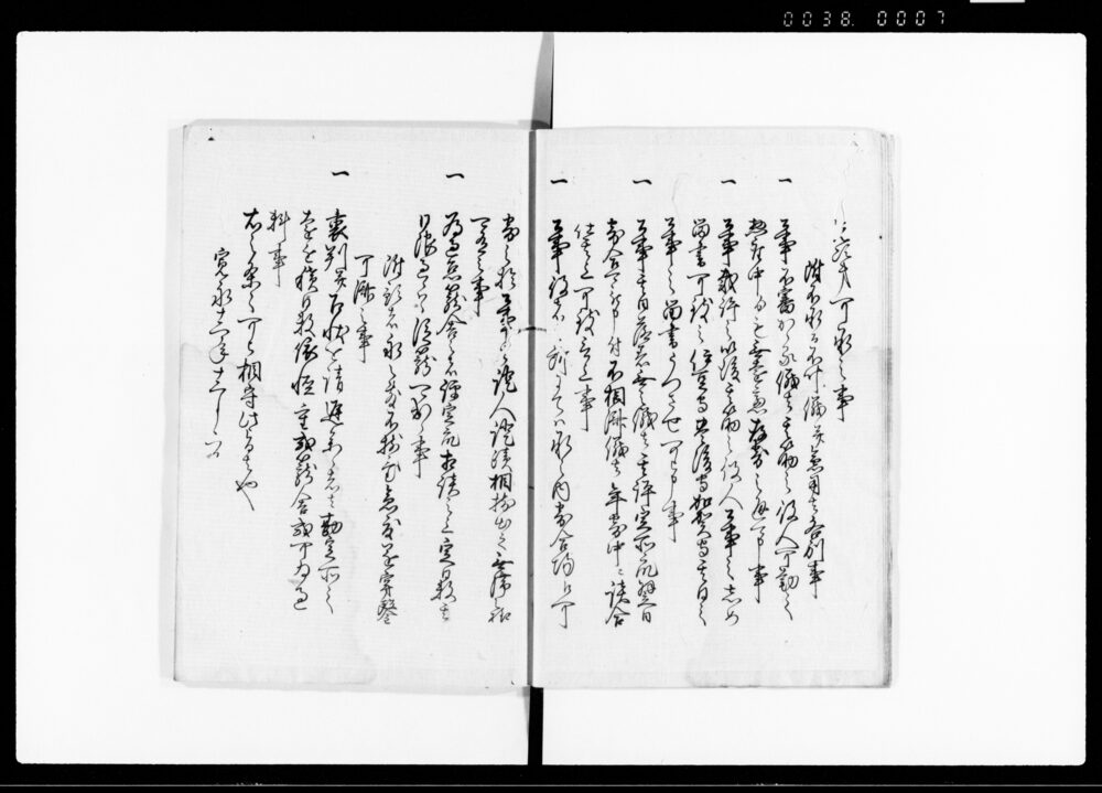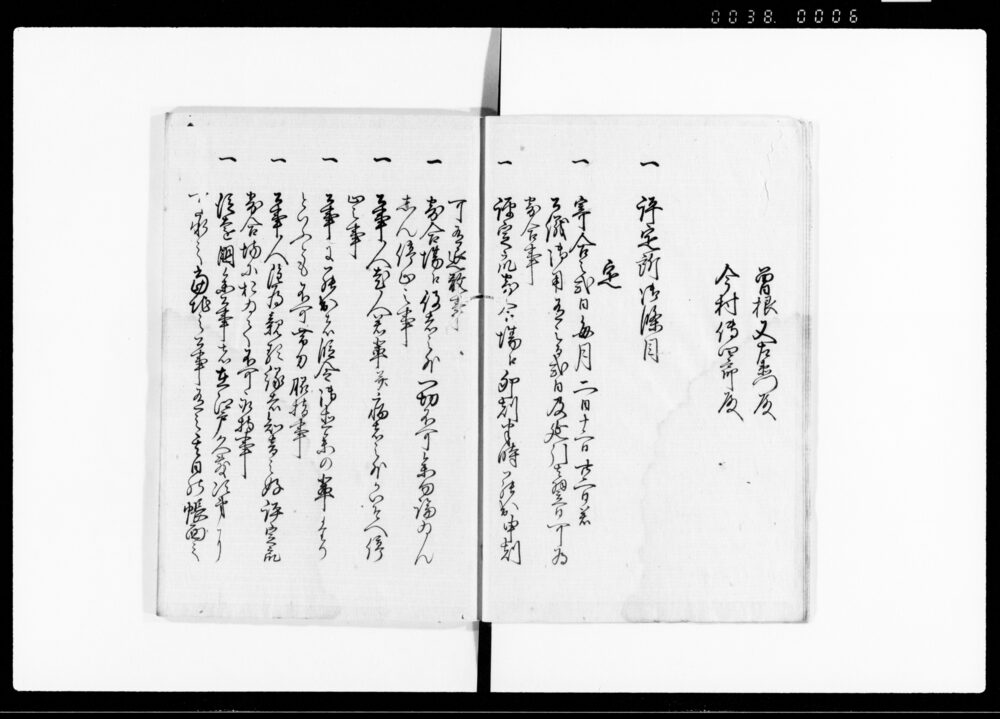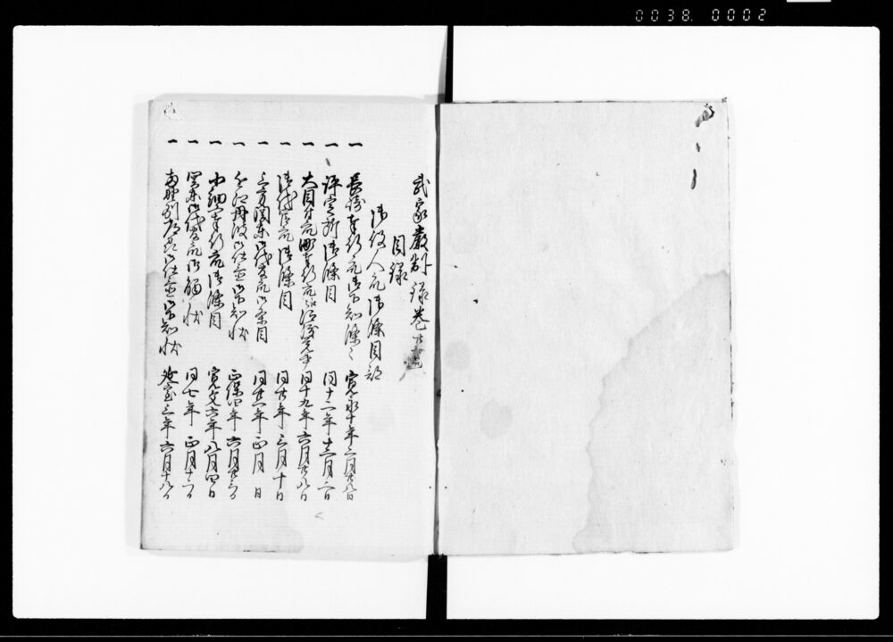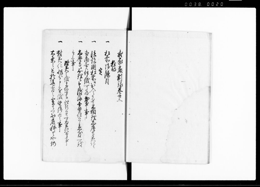 | 5 | ![]() | 90376055 | 武家厳制録 巻37 Buke Genseiroku Vol. 37 (Hand-copied Book of Laws) | [江戸時代] 17~19世紀 | 23.3cm x 16.7cm |