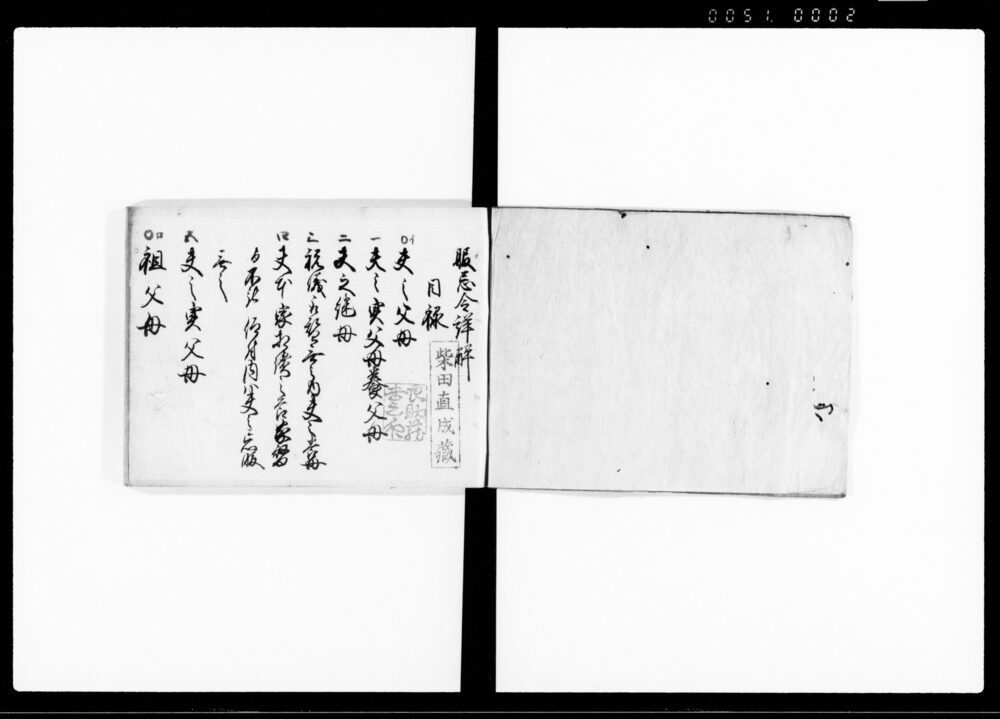 | 2 | ![]() | 90376064 | 服忌令詳解 父母等 Bukkirei Shōkai, Fubotō (Detailed Explanations of the Edict on Mourning and Abstention: Parents and Others) | [江戸時代] 17~19世紀 | 13.0cm x 18.5cm |