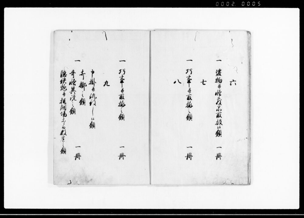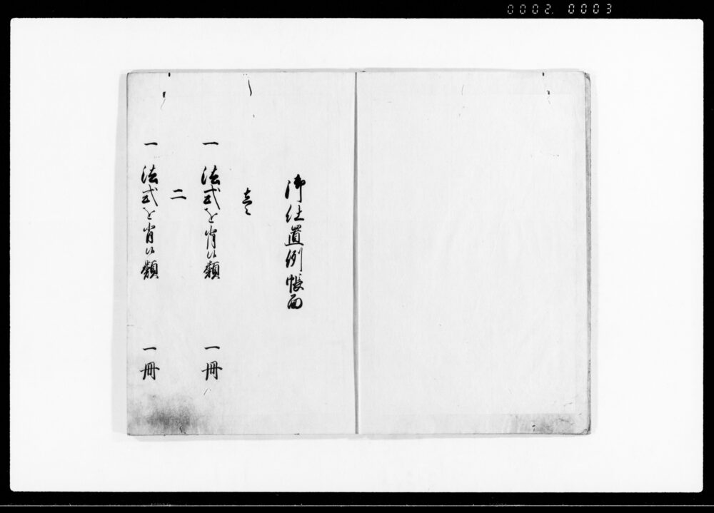 Oshiokirei, Table of Contents (Hand-copied Book of Laws)