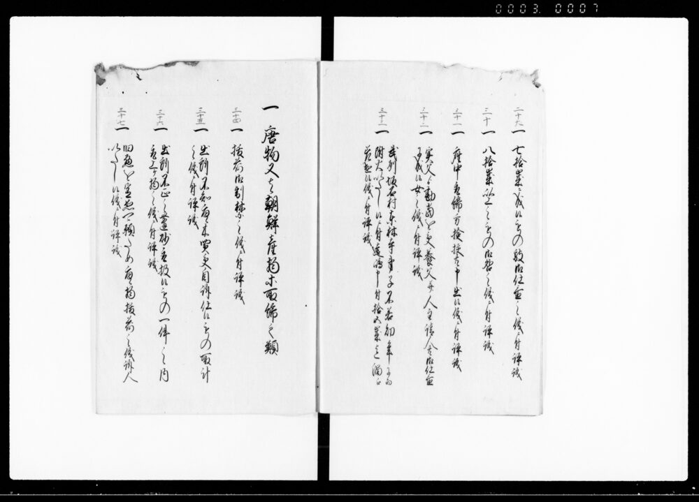 | 2 | ![]() | 90376071 | 御仕置例 目録 Oshiokirei, Table of Contents (Hand-copied Book of Laws) | [江戸時代] 17~19世紀 | 29.0cm x 20.8cm | |