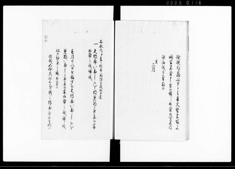 | 3 | ![]() | 90376073 | 御仕置例 第16巻 Oshiokirei Vol. 16 (Hand-copied Book of Laws) | [江戸時代] 17~19世紀 | 29.0cm x 20.8cm | |