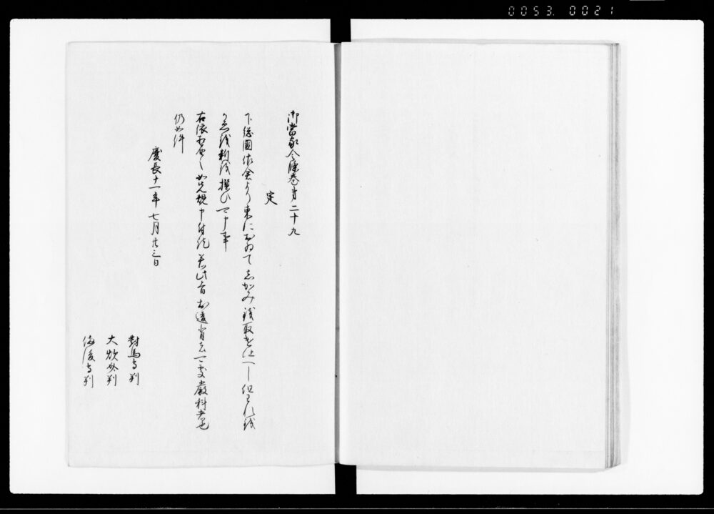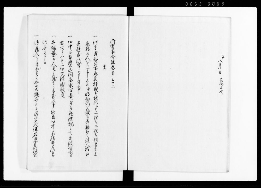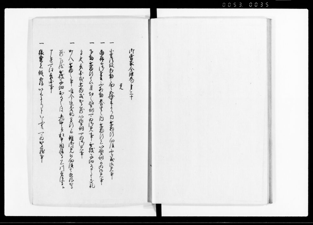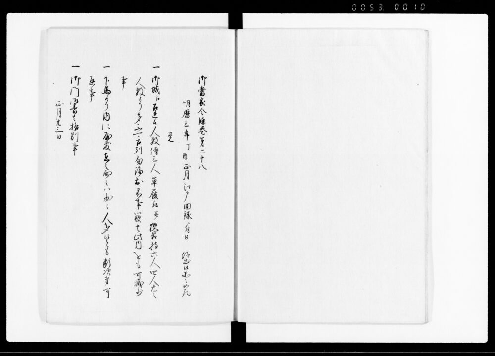 | 3 | ![]() | 90376701 | 御当家令條 (二) Gotōke Reijō Vol. 2 (Hand-copied Book of Laws) | [江戸時代] 17~19世紀 | 27.4cm x 19.9cm | |