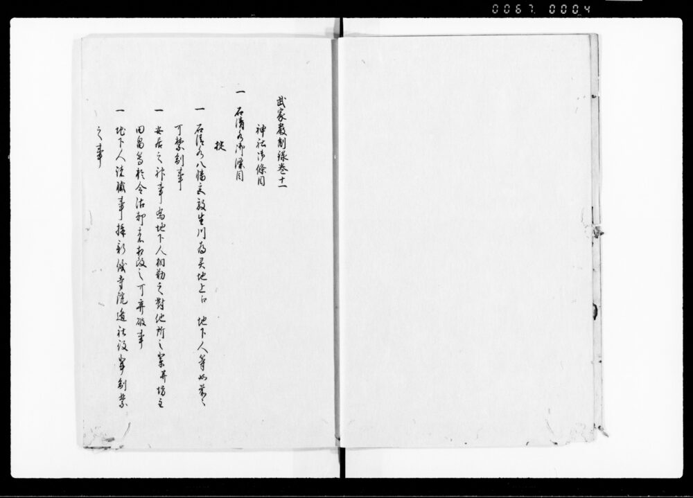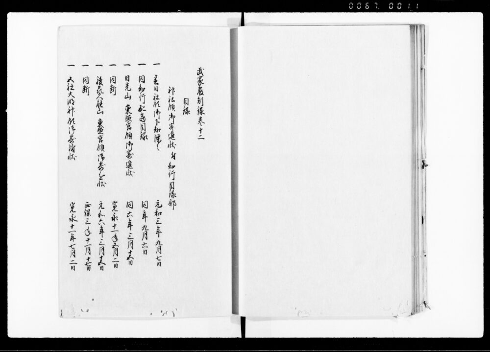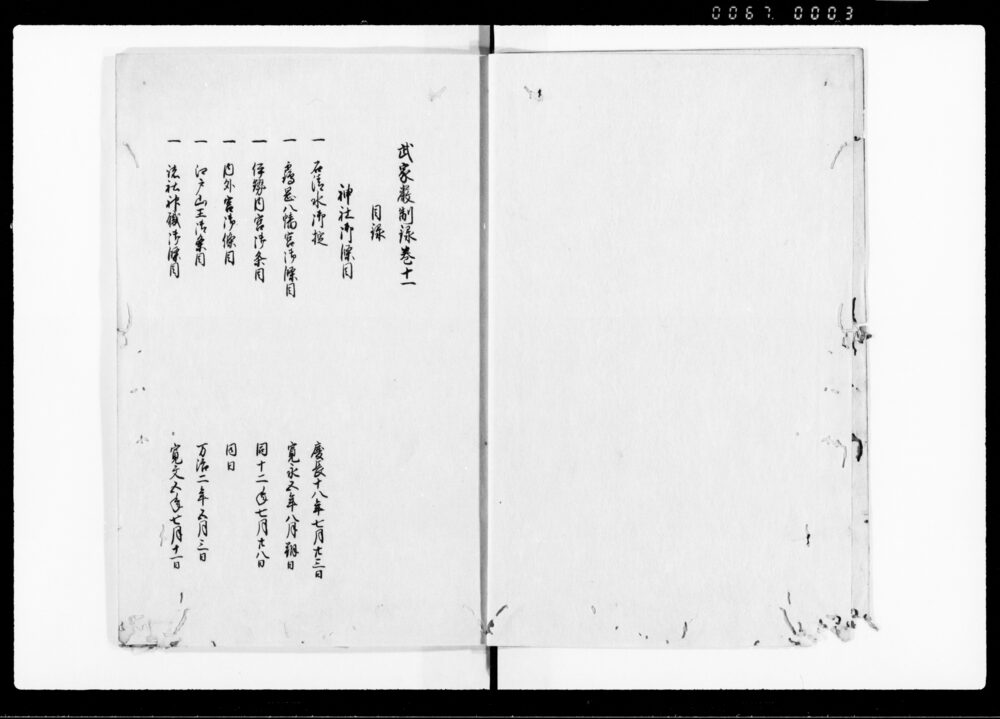 | 2 | ![]() | 90376883 | 厳制録 目録 Genseiroku, Table of Contents (Hand-copied Book of Laws) | [江戸時代] 17~19世紀 | 27.5cm x 18.5cm | |