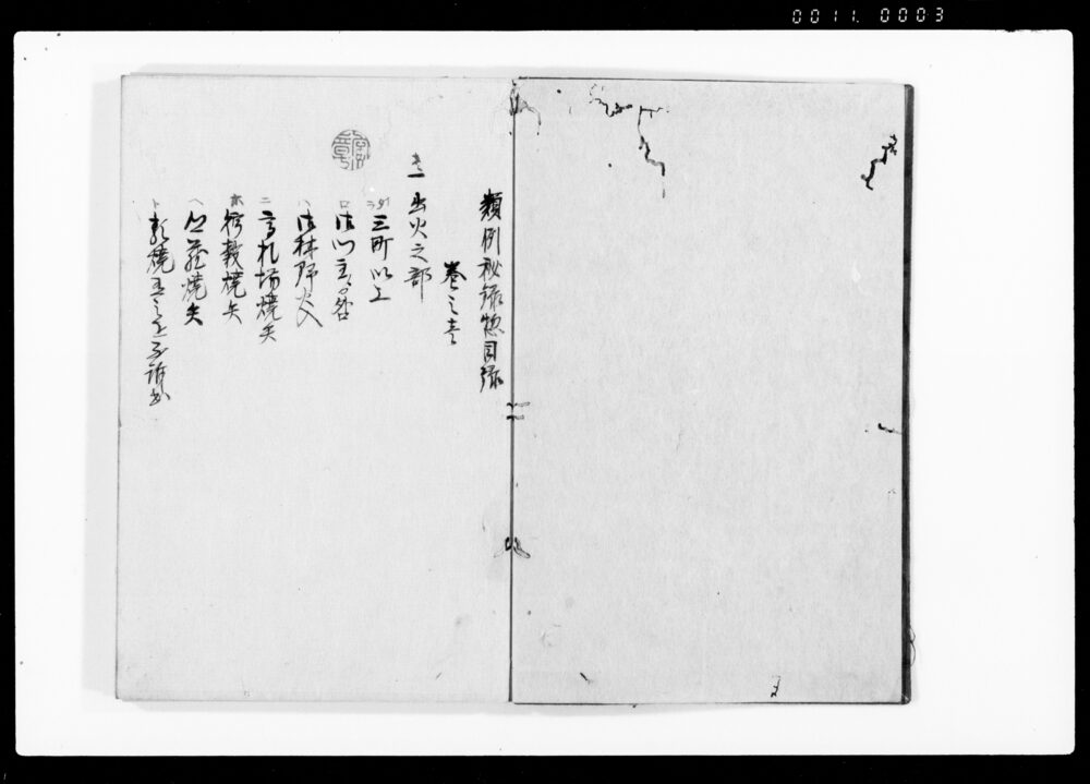 | 1 | ![]() | 90378071-90378073 | 類例秘録 Ruirei Hiroku (Hand-copied Book of Laws) | [江戸時代] 17~19世紀 | ||