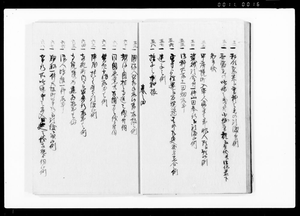 | 2 | ![]() | 90378072 | 類例秘録 巻之四 Ruirei Hiroku Vol. 4 (Hand-copied Book of Laws) | [江戸時代] 17~19世紀 | 26.3cm x 28.2cm | |