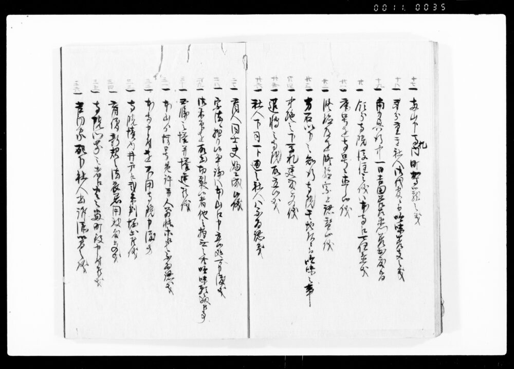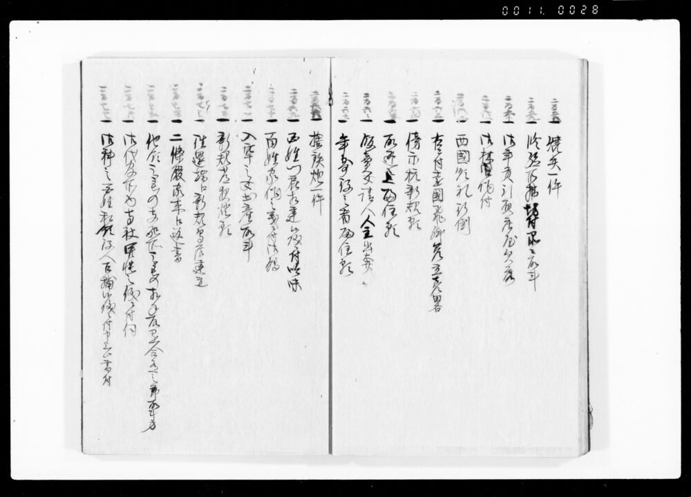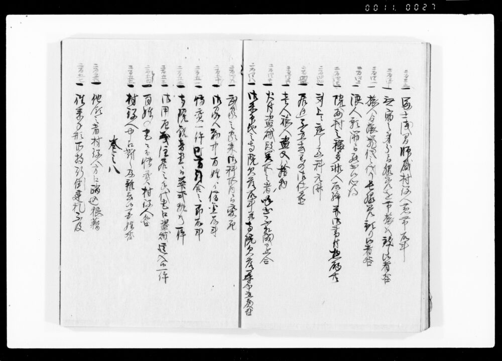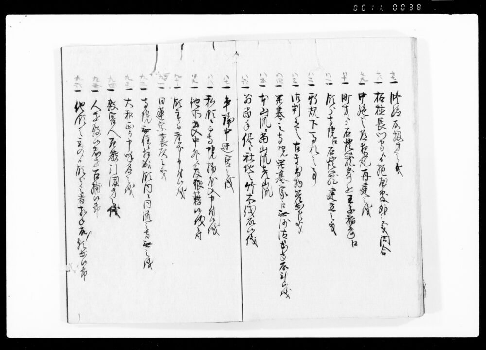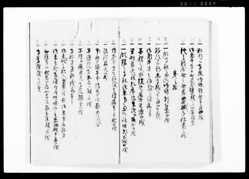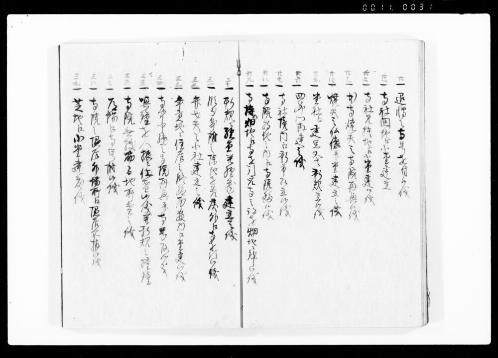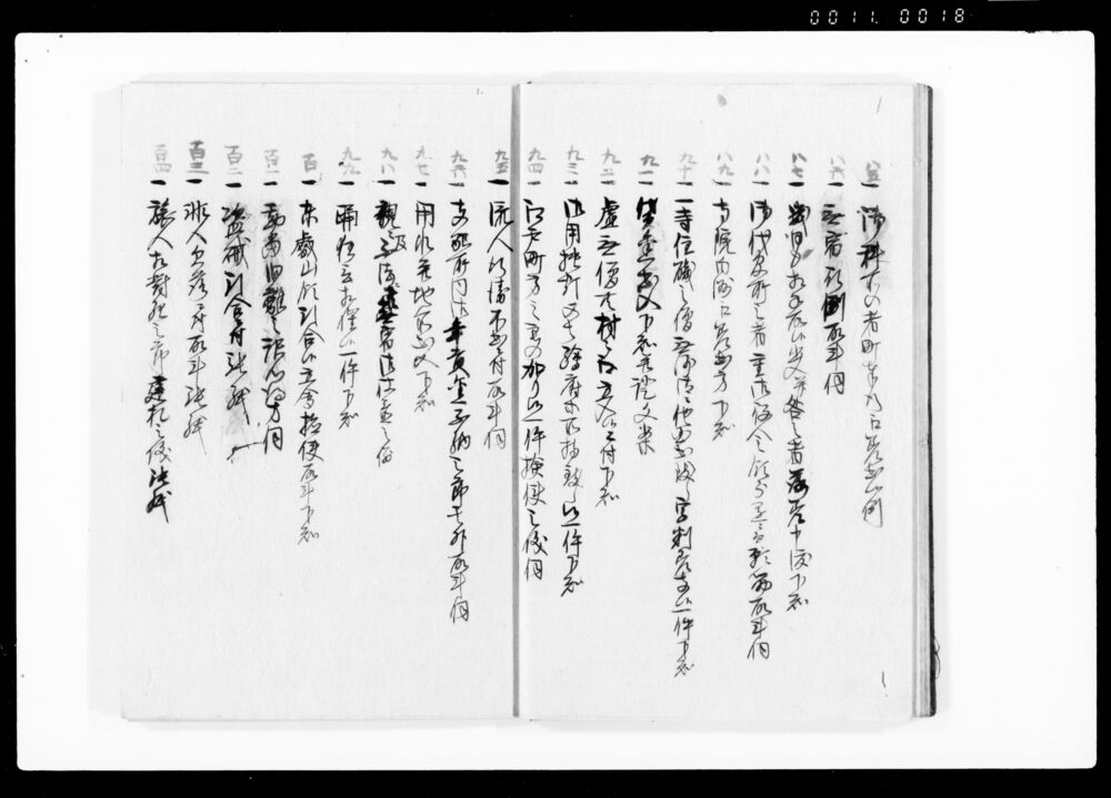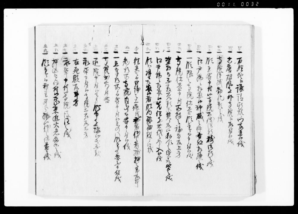 Ruirei Hiroku, Full Table of Contents (Hand-copied Book of Laws)