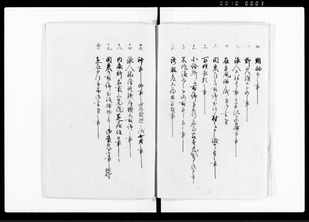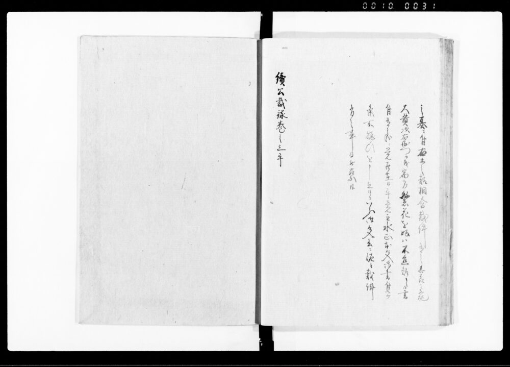 | 3 | ![]() | 90378329 | 続公裁録(巻之四上) Sequel to Kōsairoku, Vol. 4, Part 1 (Hand-copied Book of Laws) | [江戸時代] 17~19世紀 | 26.2cm x 18.5cm | |