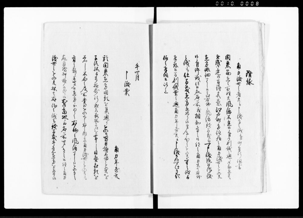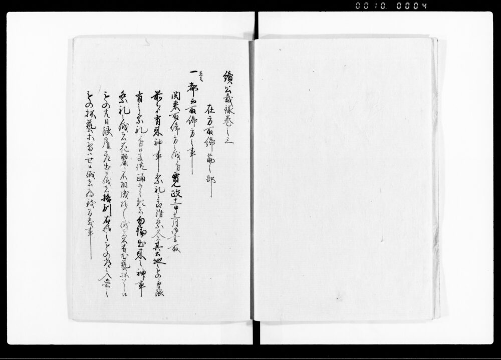 | 4 | ![]() | 90378330 | 続公裁録(巻之四下) Sequel to Kōsairoku, Vol. 4, Part 3 (Hand-copied Book of Laws) | [江戸時代] 17~19世紀 | 26.2cm x 18.5cm | |