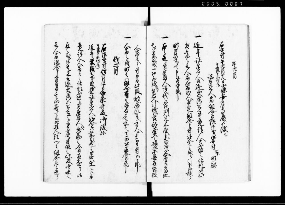 | 3 | ![]() | 90378340 | 公裁秘録 七 Kōsai Hiroku Vol. 7 (Hand-copied Book of Laws) | [江戸時代] 17~19世紀 | 25.8cm x 18.8cm | |