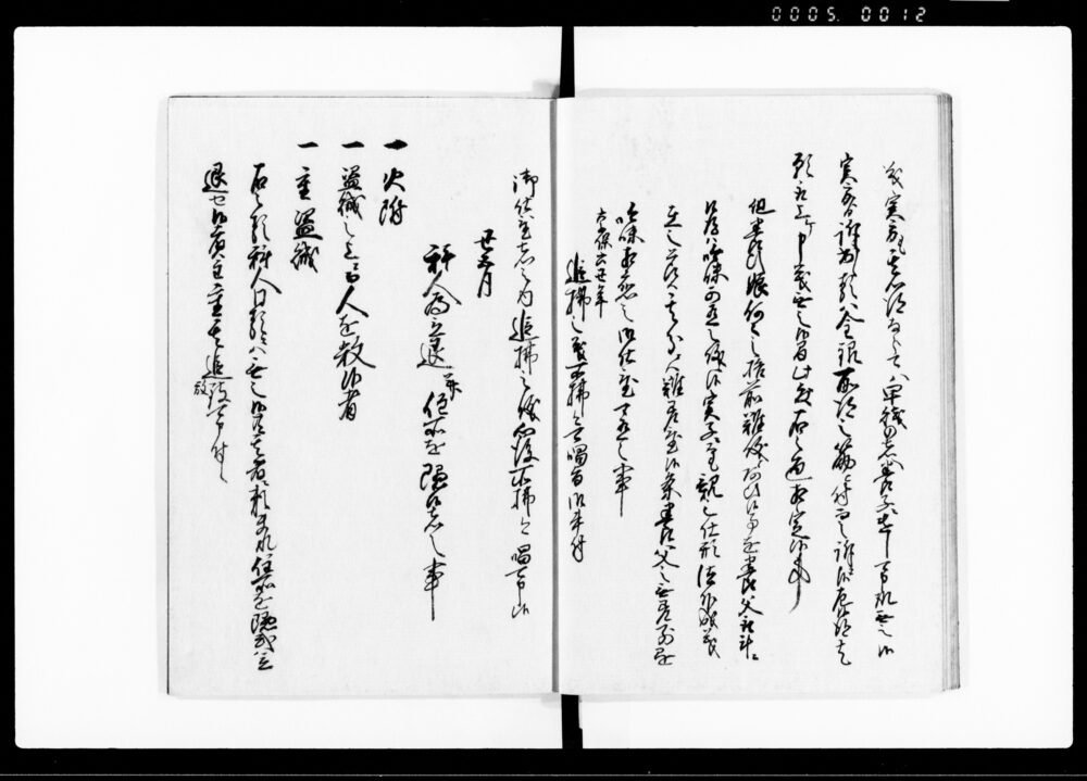 | 7 | ![]() | 90378345 | 公裁秘録 十二 Kōsai Hiroku Vol. 12 (Hand-copied Book of Laws) | [江戸時代] 17~19世紀 | 25.8cm x 18.8cm | |