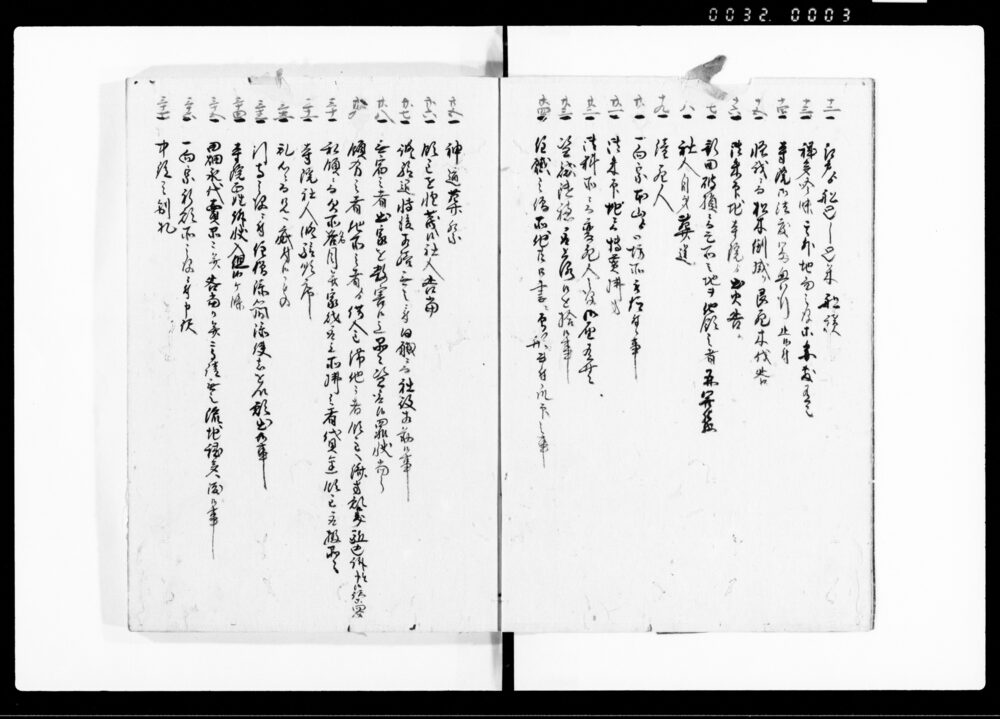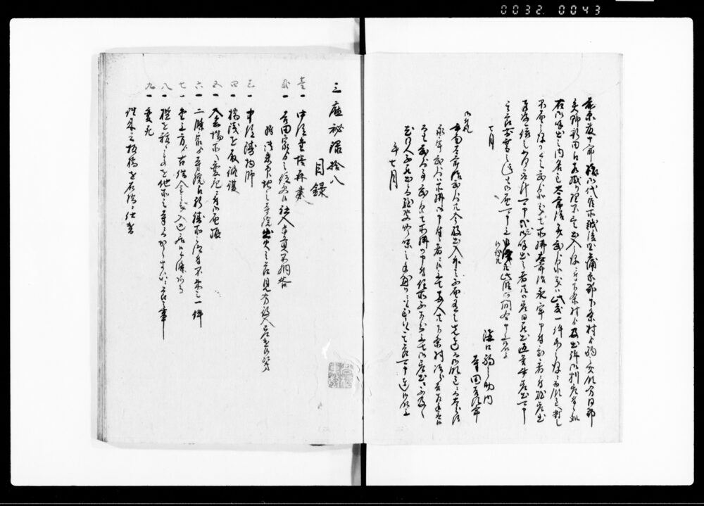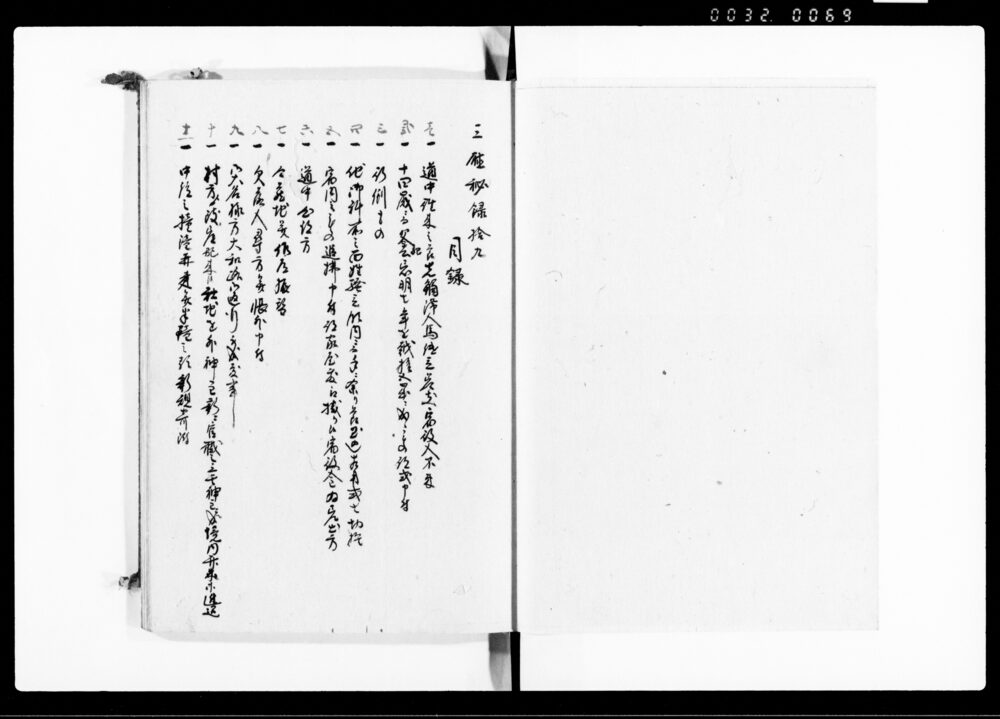 | 3 | ![]() | 90378459 | 三庁秘録 十五 十六 Sanchō Hiroku, Vol. 15, Vol. 16 (Collection of Inquiries and Directives between the Three Magistrates’ Offices and the Shōgunate) | [江戸時代] 17~19世紀 | 25.7cm x 19.3cm |