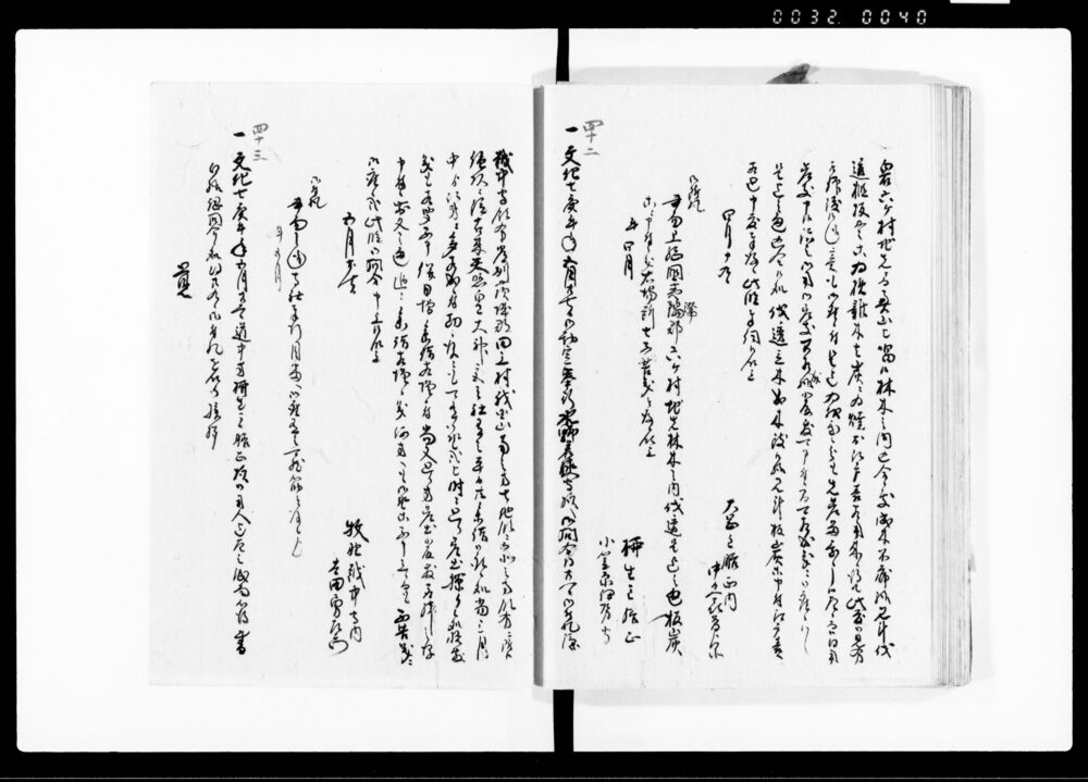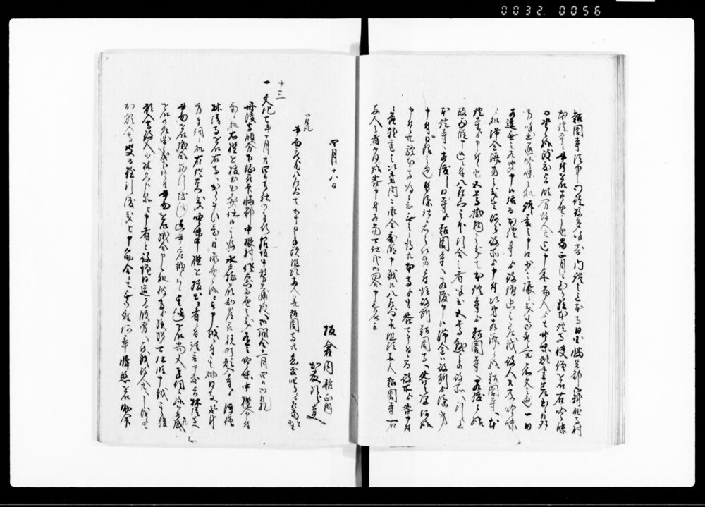 | 2 | ![]() | 90378458 | 三庁秘録 十三 十四 Sanchō Hiroku, Vol. 13, Vol. 14 (Collection of Inquiries and Directives between the Three Magistrates’ Offices and the Shōgunate) | [江戸時代] 17~19世紀 | 25.7cm x 19.3cm | |
