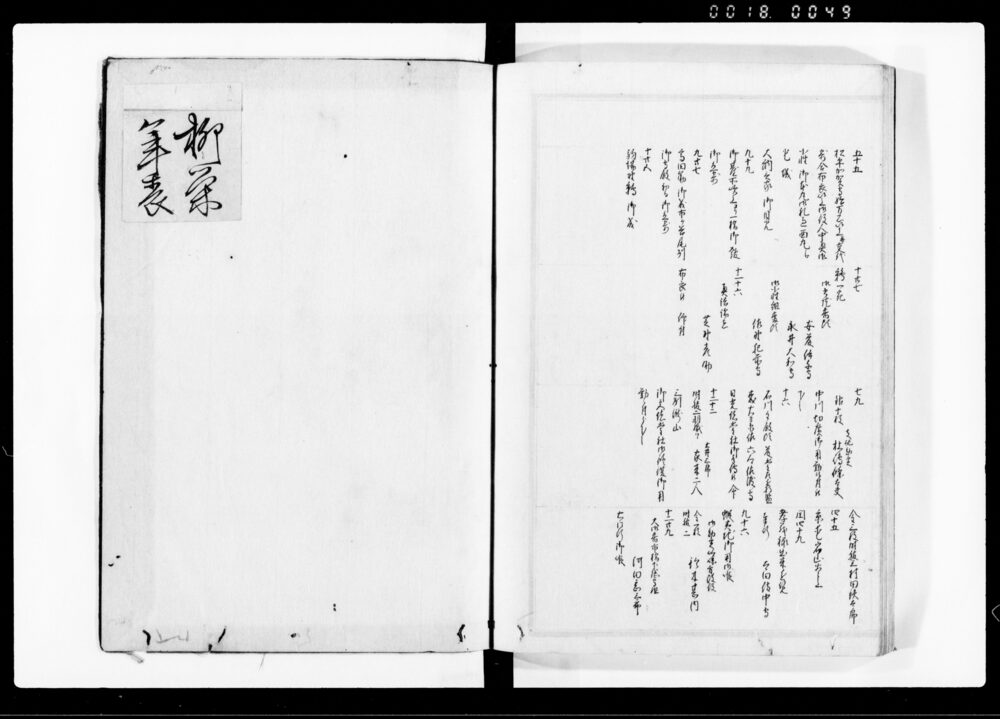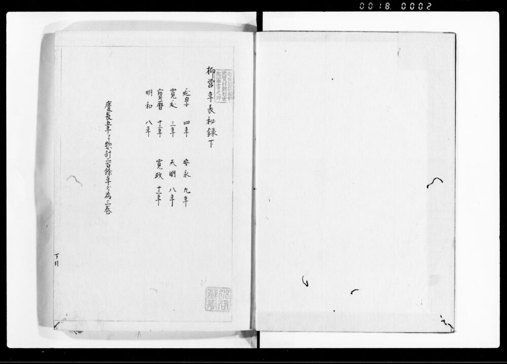 | 1 | ![]() | 90378648-90378650 | 柳営年表 Ryūeinempyō (Chronology of the Shōgun’s Court) | [江戸時代] 17~19世紀 | ||