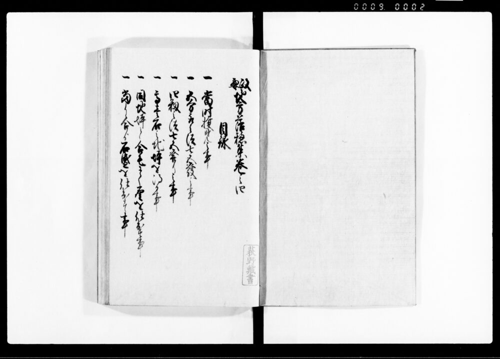 | 2 | ![]() | 90378660 | 改正 地方落穂集 七 Jikata Ochiboshū, Revised, Vol. 7 (Collection of Regional Laws, Regulations, and Practices) | [江戸時代] 17~19世紀 | 24.1cm x 16.0cm |