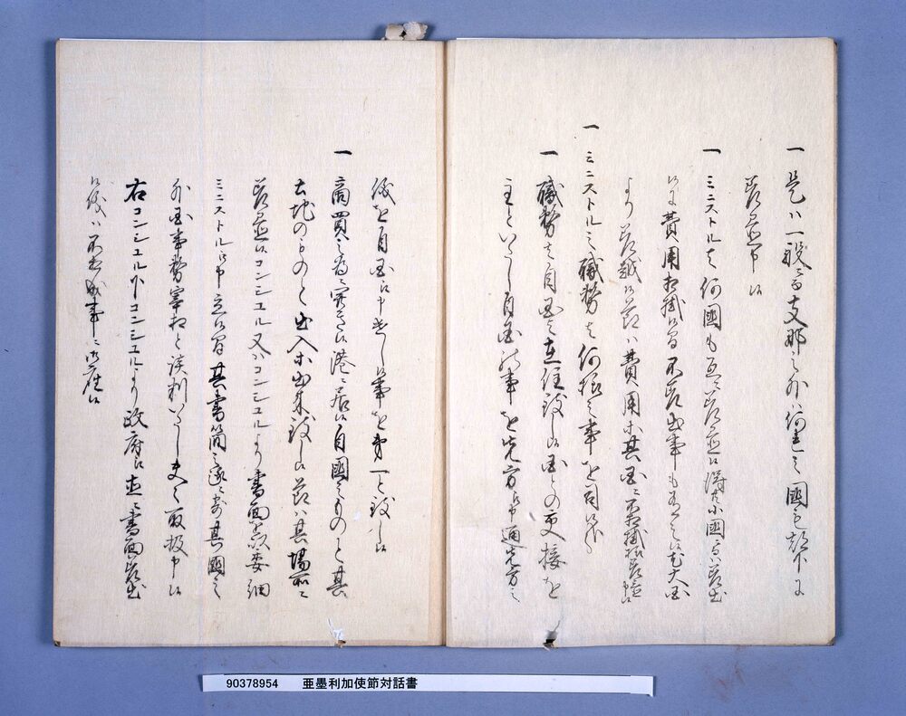 | 1 | ![]() | 90378954-90378959 | 亜墨利加使節対話書 America Shisetsu Taiwasho (The Record of Dialogues with the American Mission) | [江戸時代] 17~19世紀 | ||