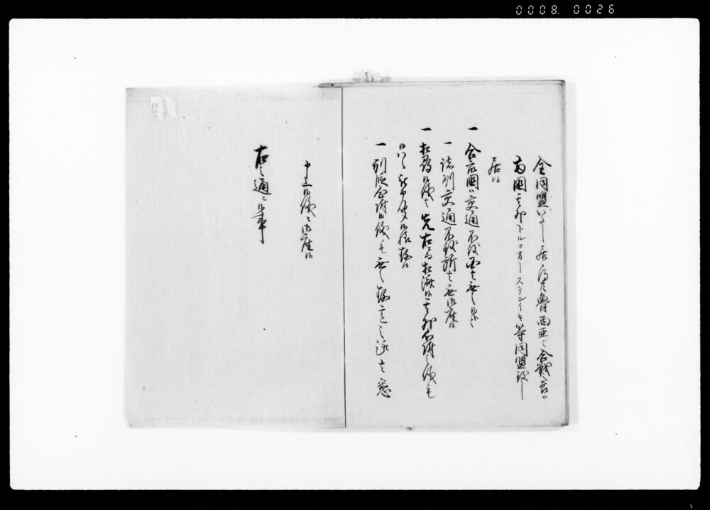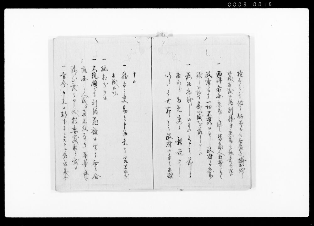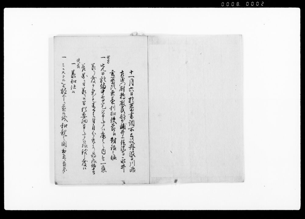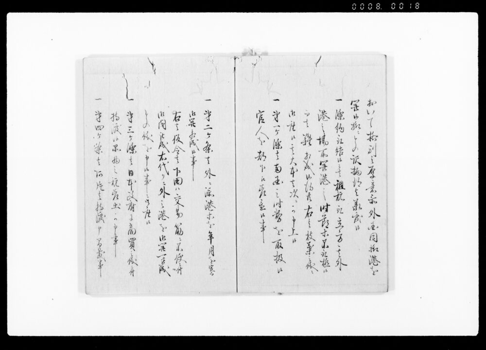 | 3 | ![]() | 90378956 | (亜墨利加人御取扱御沙汰につき上申書) America Jin Otoriatsukai Osatanitsuki Jōshinsho (Report Concerning the Directives on the Treatment of Americans) | [江戸時代] 17~19世紀 | 27.9cm x 20.2cm | |