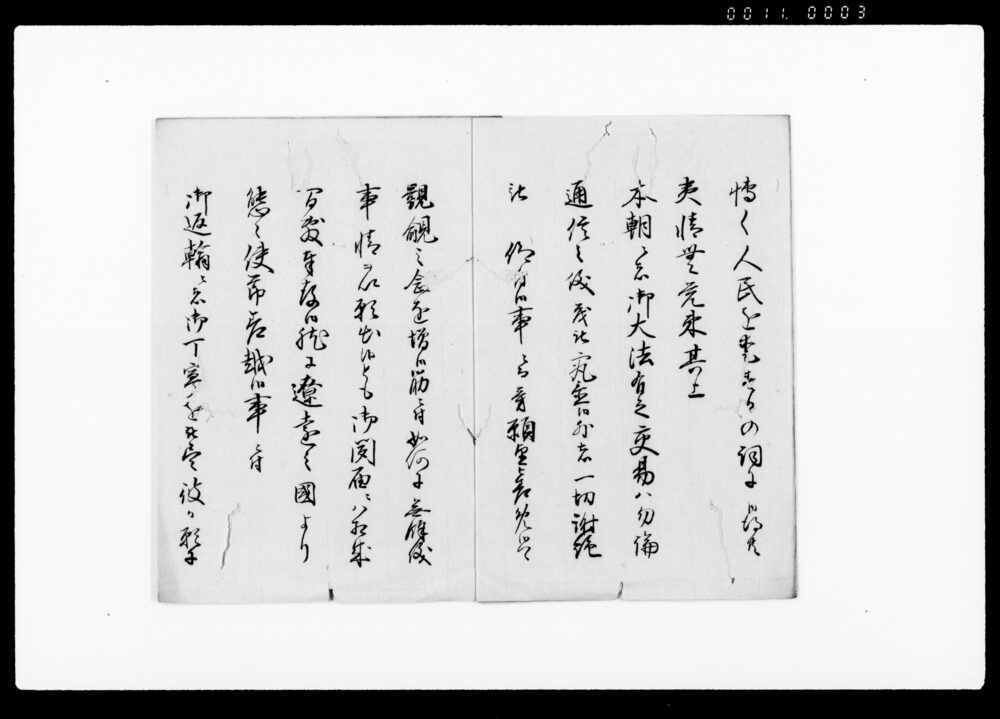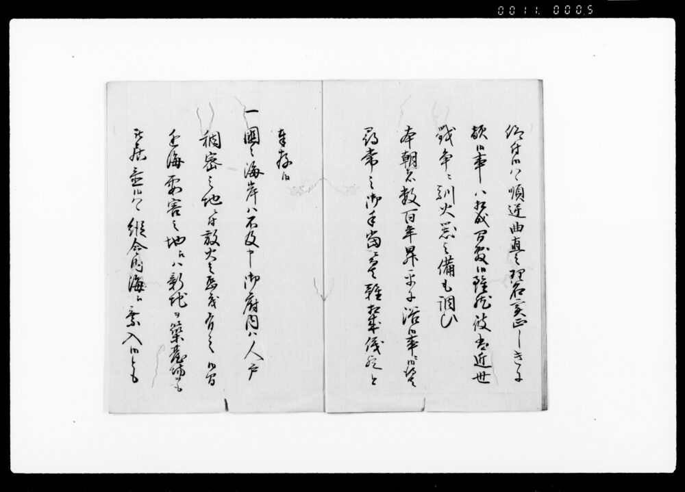 | 4 | ![]() | 90378956 | (亜墨利加人御取扱御沙汰につき上申書) America Jin Otoriatsukai Osatanitsuki Jōshinsho (Report Concerning the Directives on the Treatment of Americans) | [江戸時代] 17~19世紀 | 27.9cm x 20.2cm | |