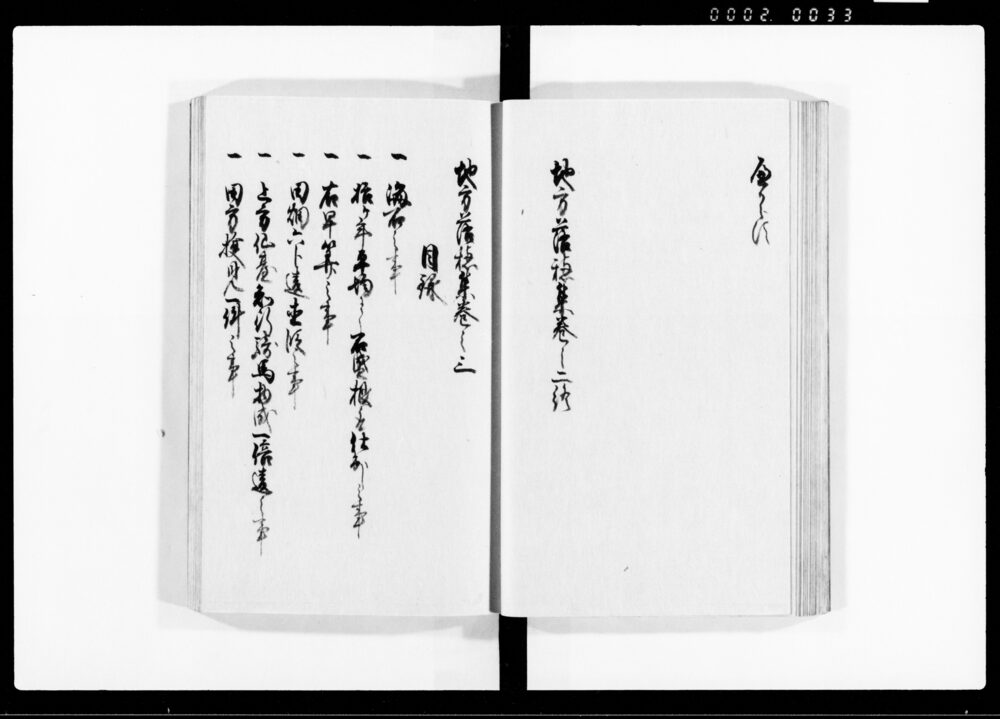 | 2 | ![]() | 90379223 | 改正地方落穂集 壱 Jikata Ochiboshū, Revised, Vol. 1 (Collection of Regional Laws, Regulations, and Practices) | [江戸時代] 17~19世紀 | 24.0cm x 16.0cm | |