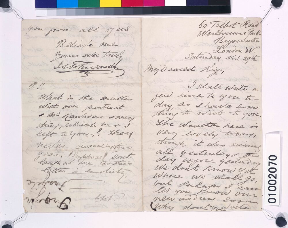 川村清雄宛書簡(ティナの退去につき)
