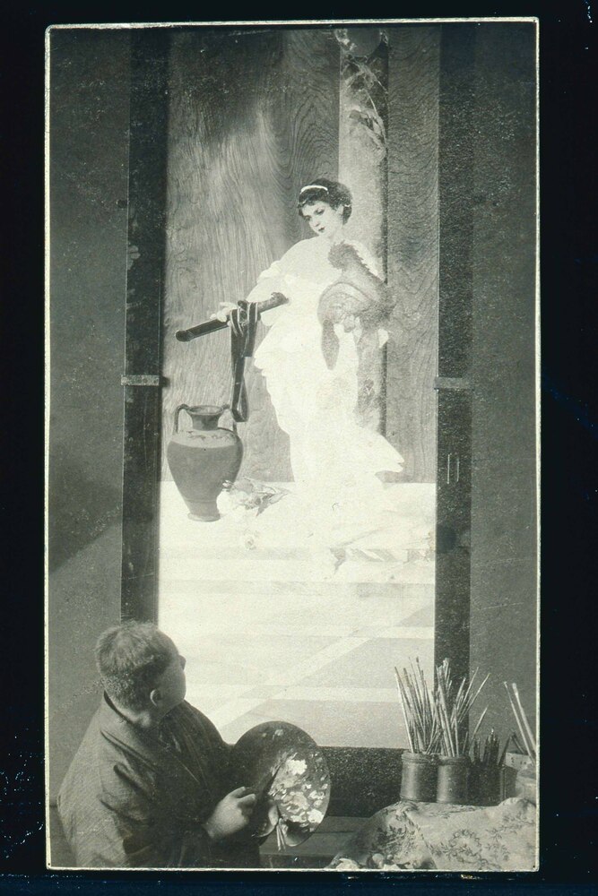 「シーザーの剣と兜」制作中の川村清雄