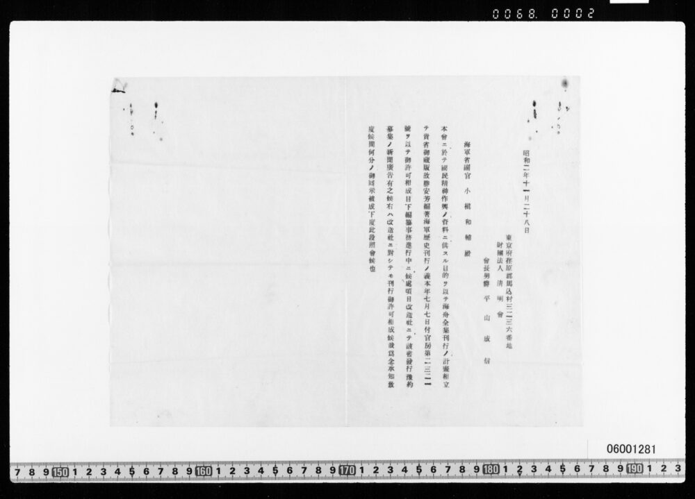 改造社海軍歴史刊行につき照会状